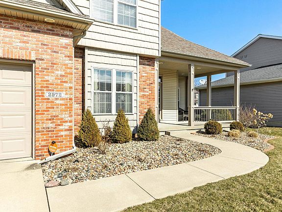 Move-in ready Eagles Landing beauty, you will appreciate the many updates in this unique floor plan. Great curb appeal boasts attractive front elevation and roof line, plus inviting entry with sitting size front covered porch! Main floor offers 9 ft ceilings, spacious foyer, hardwood flooring (2017), gorgeous crown molding and trim, beautiful family room with cathedral ceiling and corner fireplace. Dream laundry room with custom cabinetry (2018). Updated large eat-in kitchen with granite countertops (2017) and walk-in pantry. Four nice size bedrooms on second floor highlighted by primary room with cathedral ceiling and custom closet (2018). The finished lower level completes the living area of home with family room, full bath and bonus office/exercise room. Improvements in last 5 years include HVAC (2017), all carpeting and hardwood (2017), custom cabinetry in laundry & primary closet (2018), most kitchen appliances(2017), custom Bali blind on sliding door (2019), Extra amenities include Central vac, drinking water system, water pressure back up sump pump. Radon mitigated. New ROOF - April 2023. Great location close to schools, parks, restaurants and shopping. Easy access to highway! A must see!
