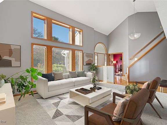 Welcome to 2973 Mourning Dove Cir, a stunning 4-bedroom 2.5 bath colonial tucked on a quiet cul-de-sac in the highly sought after Hunter’s Crossing community. With over 3,300 sq. ft. of living space, this light-filled home blends soaring architecture, modern updates, & a truly exceptional setting. Step into a dramatic 2-story foyer surrounded by large windows that flood the home with natural light. The vaulted living room & vaulted family room with a fireplace create an impressive open feel perfect for relaxing or entertaining. The spacious kitchen features granite countertops & views of the private yard, while the elegant dining room showcases crown molding. A first-floor office, laundry room and half bathroom add to everyday functionality. Upstairs, you’ll find 4 bedrooms, including the vaulted owner’s suite providing a retreat-like feel that has been freshly painted with new carpet, an accent wall, and an ensuite bath w/ dual sinks, skylight, and walk-in closet. (3) additional bedrooms, and another full bathroom offer comfort & charm to finish off the top floor. The finished basement is a true bonus, offering approximately 800 sq. ft. of versatile living: a library or office with built-ins, a recreation area, workout zone, media space with custom cabinetry & mini-fridge, daylight windows that brighten the entire level. Step through the sliding glass doors from the family room onto a large deck that overlooks a fenced-in, tree-lined backyard, giving you a private outdoor retreat ideal for gatherings or quiet evenings at home. Major mechanicals are updated for peace of mind: roof (2011), furnace (2018), kitchen appliances (2018), hot water tank (2019), & A/C (2020). Located in a tranquil neighborhood close to top-rated schools, local parks, walking trails, restaurants, and shopping; this home delivers the perfect combination of privacy and convenience. This is the home you’ve been waiting for as it’s move-in ready, beautifully maintained, and truly one-of-a-kind.
