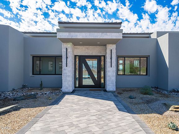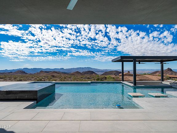 Welcome to 2973 Plaza Enclave The Ultimate Lake Havasu Luxury Retreat. Experience elevated desert living in this tranquil estate style masterpiece showcasing panoramic views, a resort-inspired pool and spa, all-ensuite bedrooms, and unparalleled privacy, all set on a 1.31 acre lot backing to BLM land with direct backyard access. Over 3,100sqft of meticulously designed living space, this home exudes craftsmanship and sophistication. Enter through a grand pivot door into an open great room with a custom wet bar and a gourmet kitchen boasting commercial grade appliances and a hidden butler's pantry. The owner's suite is a private sanctuary with a fireplace, soaking tub, massive walk-in shower, and expansive closet. Outside, enjoy a very private resort-style pool and spa with a Baja shelf, and a sprawling tiled patio. Feels like vacation every time you arrive home! Everyone will appreciate the 3500sqft of DOUBLE DOUBLE RV garages, 2-car garage, and gated side parking.