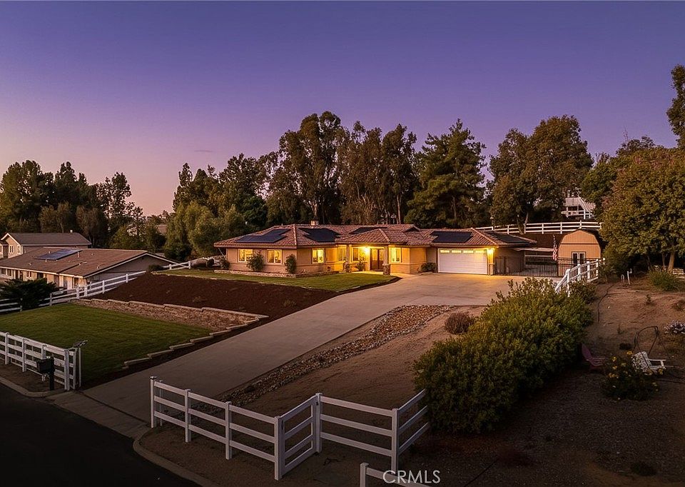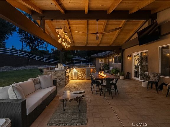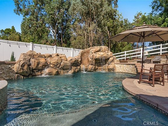 Meadowview – Refined living and outsized entertaining opportunities come together in this Meadowview residence. Sited on an elevated lot spanning just over ½ acre, this 2,875 square foot home has been thoughtfully upgraded throughout. The quintessential chef’s kitchen anchors the living space, combining vintage character with modern convenience. Expansive granite countertops and an oversized island offer generous preparation and gathering space, complemented by custom cabinetry and premium stainless-steel appliances, including a professional-grade cooktop. An elegant apron-front copper sink and bronze fixtures enhance the presentation, while the warm engineered wood flooring seamlessly flows into the adjacent open living and dining spaces. Vaulted ceilings with exposed beams and abundant natural light create an inviting, airy atmosphere throughout the common areas. At approximately 750 square feet, the primary suite maintains the design theme of the home with vaulted ceilings, multiple windows and slider access to the backyard, all anchored by a dual sided fireplace with a stacked stone fireplace surround. The ensuite bathroom is a spa-like escape with marble finishes, a freestanding claw foot tub, and walk-in shower. The interior of this home impresses, and the outside is no different. The focal point of the outdoor gathering space is the robust pavilion. Hulking beams, inlaid wood ceiling treatment, and artisan lighting set the tone for the backyard space. Under the shade of the pavilion is a full outdoor kitchen: Evo cooktop, Coyote smoker/grill, Beer Meister, and sink. The stamped and stained concrete makes its way to the exceptional pool and spa. A beach entrance, pebbletec finish, raised spa, water slide, grotto, and multiple waterfalls all come together to create this extraordinary aquatic retreat. Additional value add items include the paid solar power system, RV parking, new paint throughout the interior of the home, completely landscaped grounds, a gated driveway entry, and meadow (nature/trail system) access at the end of the cul de sac. Residents of the Meadowview community enjoy a robust list of amenities including hiking and riding trails, equestrian amenities, pools, and a clubhouse. Homes with this much to offer are seldom available in this community; take a look today.