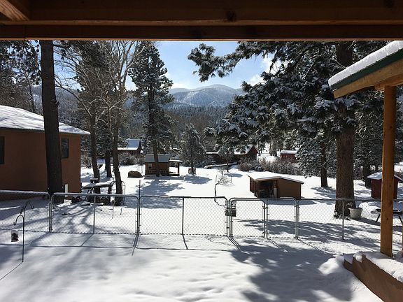 Log sided home on the Cimarron River with white aspen interior and huge garage/workshop. Awesome mountain views in all directions!