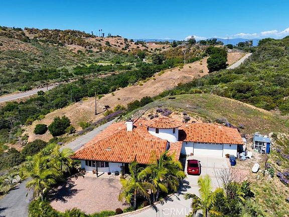 Nice Hilltop custom home located in Valley Center, Gated entry to home and plenty of room to add an ADU, (All permitting on ADU and permits up to buyer to do own due diligence. Just shy of 7 acres. 3-bedroom 2.5 bath home, high ceilings, nice granite counters open kitchen, custom wood ceiling. Has Solar, Spacious family room with a wood burning stove leads outside to a nice gathering area. Oversized e size 2 car garage with a small bathroom and separate garage entrance. Pest Report has been completed and is clean. Don't think entrance gate is working. Needs a little TLC... Back on Market and off HOLD **********Must cross qualify with preferred Lender Chad Ulmer contact agent for information.