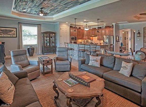 This Fiddler's Creek Victoria Executive home is truly a "WOW". Elegant yet welcoming professional interior design like no other. If you like what you see in the pictures; you will love in person. This Florida-style home offers one of the largest covered outdoor lanai spaces overlooking lake and lush tropical landscaping. Over $30,000 in custom design features including custom paint, stone work, wood work in tray ceilings, high end light fixtures and fans, window coverings, summer kitchen etc. Natural gas services cook top, outdoor summer kitchen, pool/spa heater, and home water heater. This Victoria plan offers a huge open great room with expansive sliding glass doors overlooking the pool, spa, and lake beyond. The Victoria plan has always been a favorite with its smart layout, large master bedroom, open kitchen, and separate office with glass french doors. This home is a better than new value intentionally priced attractively for a quick sale.