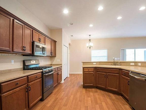 Don’t miss this exceptional 5 bedroom, 3 bathroom residence boasting 2,908 sqft of living space on a 0.33-acre lot with no rear neighbors. This home features a triple-split floor plan, vaulted ceilings soar over the light-filled great room, vinyl-wood composite flooring flows throughout. The kitchen equipped with solid wood cabinetry, a breakfast bar, and a natural gas range, all flowing into the family and dining areas. The primary suite is a peaceful retreat, dual vanities, walk-in shower, soaking tub, and a generous walk-in closet. The front secondary bedroom offers flexibility as an office or guest space. Step outside to the covered lanai with great for future pool possibilities. The expansive, private backyard is amazing to entertain.