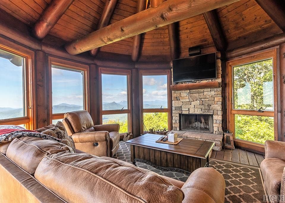 PANORAMIC VIEWS!!! Unbelievable long-range southerly views from this beautiful log home sitting at over 4,500 ft of elevation in Sapphire Valley. With 4 bedrooms, an office, two living areas, and an additional bonus room for overflow guests, there is plenty of room for family and friends! The beautiful home even features a glassed-in four seasons porch with its own wood burning fireplace, as well as an additional screened porch and open-air balcony. The crawlspace is encapsulated, and a new generator was recently installed. This home sits adjacent to Panthertown Valley which offers 6,300 acres of USFS trails, and the home also enjoys all of the SVMA amenities including a fitness center, indoor/outdoor pools, an arcade, miniature golf, ski slope, playground, and access to private Fairfield Lake. Must see!