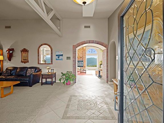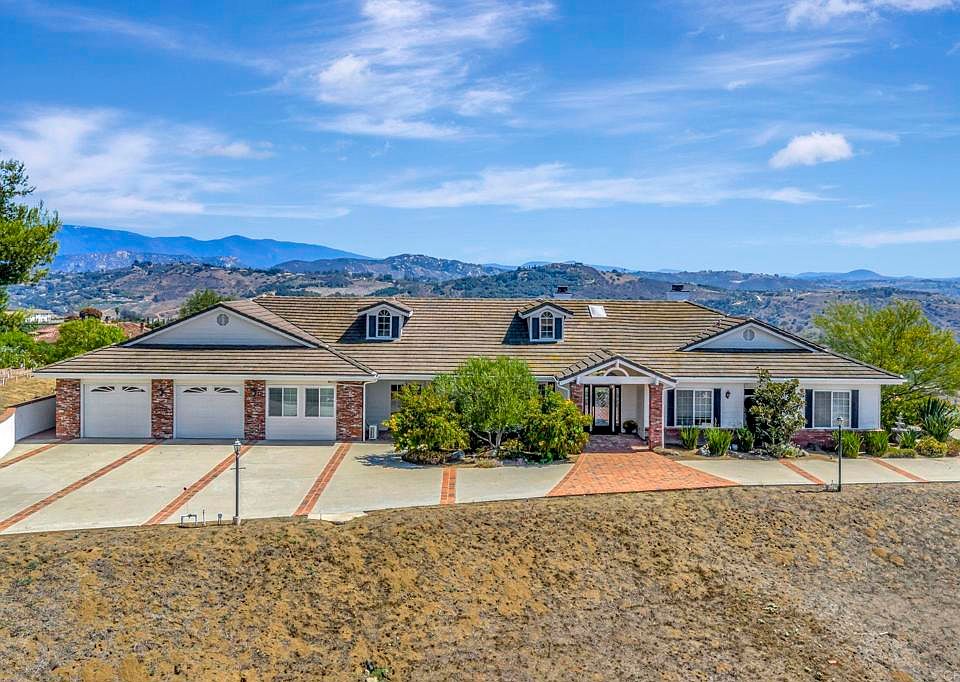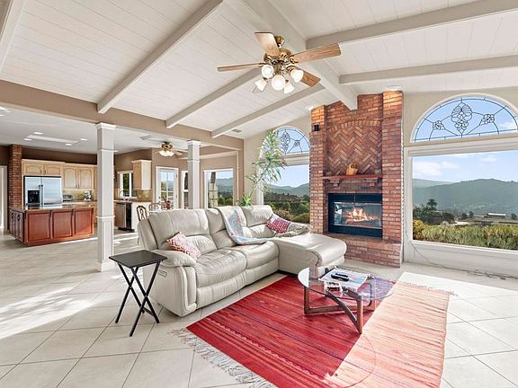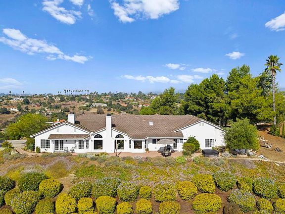 TRANQUIL, RIDGE-TOP CUSTOM-BUILT HOME with unparalleled panoramic sunrise AND sunset views from nearly every room in the house. Majestic rolling hills and Palomar Mountain to the east and then there's sweeping views of rolling hills and the Sleeping Indian mountain formation to the west, bringing in the gentle ocean breeze. From the moment you ascend the long elegant driveway you’ll feel transported to your very own top-of-the-world private retreat. The views from this home are absolutely breathtaking and a MUST SEE! The gorgeous beveled-glass front door welcomes you into this expansive 4-bedroom home boasting beautiful high beam ceilings, as well as, an additional separate office/guest unit with its own entrance and kitchenette. This spacious home is ideal for entertaining with the generously sized kitchen alongside the welcoming family room, all of which flow gently into the formal dining and living rooms. Plus there’s a great perk with having fully-owned solar, TWO walk-in closets in the primary suite, spacious kitchen with walk-in pantry, induction oven, high ceilings, raised garden beds, lime and lemon trees, a gazebo perfect to enjoy the morning or even the afternoon views. With well over 2 acres of land, the possibilities are endless—you could possibly have your own avocado grove, swimming pool, ADU, workshop or just leave it the way it is and enjoy this magnificent property located just minutes to the 76 yet it feels like it’s in another world—peaceful and serene. This is a MUST SEE home.