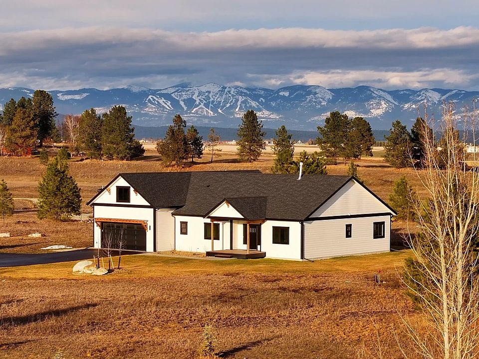 Live Your Montana Dream! Wake up every day to breathtaking mountain views from this stunning 5-acre property in the highly sought-after West Valley. The land is flat, fully usable, and showcases sweeping vistas from Glacier National Park to the Mission Mountains. This newly constructed home is complete and move-in ready, offering the perfect blend of privacy, space, and convenience. Recent improvements include newly installed sod and underground sprinklers, along with thoughtfully designed landscaping featuring artistic rock formations and a cozy fire pit area—ideal for enjoying Montana evenings. The home offers over 3,200 square feet of beautifully designed living space, featuring 4 bedrooms and 3 bathrooms with exceptional attention to detail and a well-planned, functional layout throughout. There is also an office that could be a 5th Bedroom! Ideally located just 10 minutes from North Kalispell shopping, 30 minutes to Whitefish Mountain Resort, and surrounded by your own private acreage with panoramic views. Need a shop? The builder can provide a custom bid for your desired design after move-in. Schedule your private showing today as this exceptional property is sure to impress. Includes a 1-year builder’s warranty.