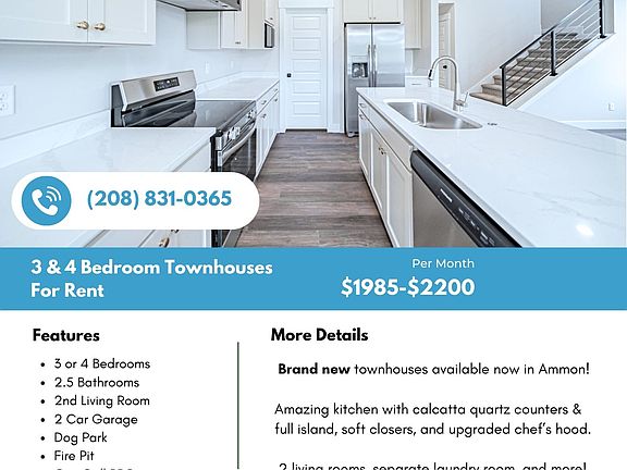 This modern townhome in Ammon offers comfort, convenience, and plenty of space for your family. With a large garage, an open floor plan, and a great community setting. Designed with convenience and comfort in mind, it's a great fit for families or professionals looking for space, storage, and modern finishes without the hassle of yard work.