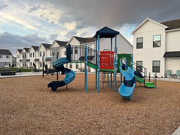 No fenced backyard, just large common area grass and play areas.