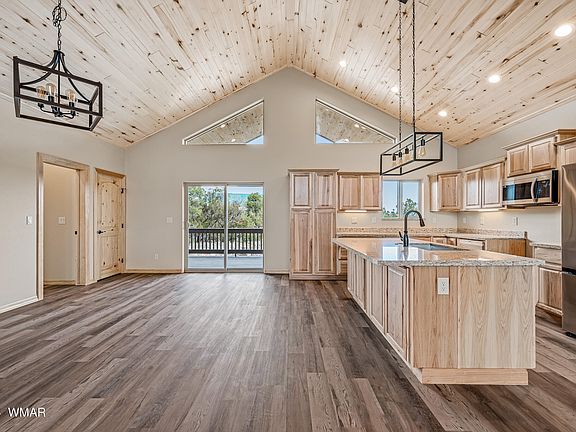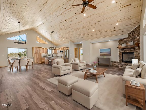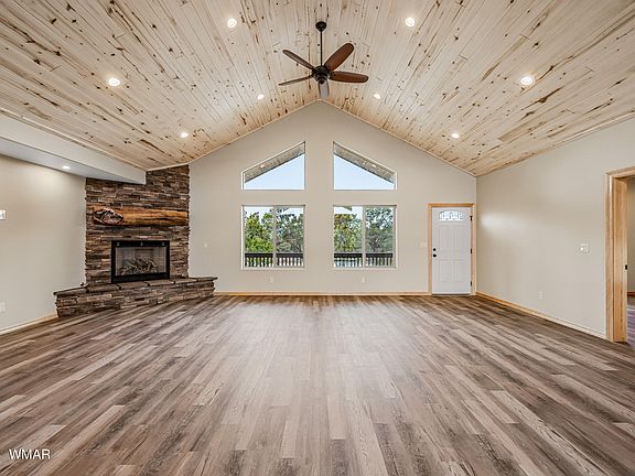 Just completed! Brand new home on an elevated lot in the White Mountains of AZ. This 3 bedroom, 2 bath home is on a heavily treed .55 acre lot. Beautiful chalet windows allow generous natural light into the home. Amenities include smart siding to minimize maintenance, a 2-car garage, recessed lighting, A/C, ceiling fans, kitchen island, under cabinet lighting, and granite counters. The front and rear composite decks are covered for maximum comfort while enjoying the outdoors. Alder doors and moldings accent the Aspen T&G ceiling in the great room. A gas fireplace showcases the great room with stacked stone and a custom carved mantle. Extra pantry space supplements ample storage. The primary bedroom has a walk-in closet, custom tiled shower, and a double vanity. Come take advantage of the cooler weather, relaxation and endless outdoor activities close by. A 1-year builder's warranty is provided.