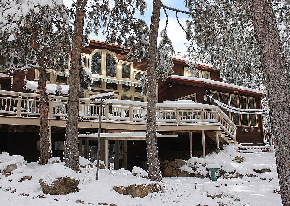 2 Beautiful Colorado Mountain homes nestled on 5.3 acres of heavily wooded land on Prime Real Estate. Located minutes away from a top D20 K-12 school(DCC) to meet all of your children's needs. The main house has 4 bedrooms & 3 ½ baths. The entire open concept is beautifully laid out. The main level features hardwood, hickory flooring throughout as well as 2-year-old carpeting in all the bedrooms and staircases. The enormous great room is ideal for entertaining with a gorgeous fireplace mantel imported from England as the focal point. It has Two-story, floor-to-ceiling windows with a glass French door that leads out to the deck to enjoy all the beauty the forest has to offer. The spotlight of the magnificent kitchen is the massive Soap Stone island, which is home to tons of storage, a countertop Wolf range, and bar stool seating. The kitchen features a bay window and lots of Floor to Ceiling windows with overhead skylights for tons of light and amazing views of the forest. All the appliances are stainless steel, including a Thermador oven/microwave unit, double-door Kitchen Aid refrigerator, and Bausch dishwasher. All the countertops, including the desk nook, sport the same gorgeous Soap Stone as the island. The backsplash is made from beautiful, unique tile imported from Italy. There is loads of storage. One wall of the kitchen features floor-to-ceiling cabinets with a pull-out pantry, appliance storage cabinet, and a swivel, lazy-Susan cabinet in the corner. Other convenient features include a pull-out for 2 garbage bins, spice organizers that pull out on either side of the range, and an area on the island for an under-the-counter wine cooler. The main level also has a nice sized laundry/mudroom located right next to the door leading to the 2-car, attached garage as well as a quarter bathroom for guests. The master bedroom is located on the main level with his and her closets, one of which is a walk-in closet, and a French door leading to the deck. The master bathroom has granite countertops, 2 sinks, a shower, and a separate whirlpool tub situated right next to a picture window with beautiful views of the forest. This is a nice oversized master. There are 2 bedrooms, a full bathroom and a large storage room located on the 2nd story. It also boasts a very large loft, perfect for a play area, gaming, or relaxing reading nook on one side, and a large built-in desk for homework or crafts is located on the other side. This is a great area for younger kids. The walk-out basement includes a wet bar, a large living area with a gas fireplace, a quarter bath, a large storage area, and French doors leading to a covered sitting area and the backyard. The large bedroom in the basement also has a walk-in closet and its own entrance to the east side of the property as well as a private bathroom with a full shower. This is an ideal setup for teens or an adult couple. This property has a well. This home is approximately 6000 sq. ft. of living.