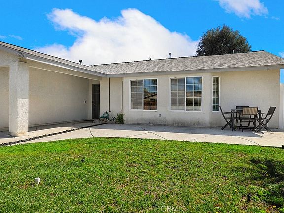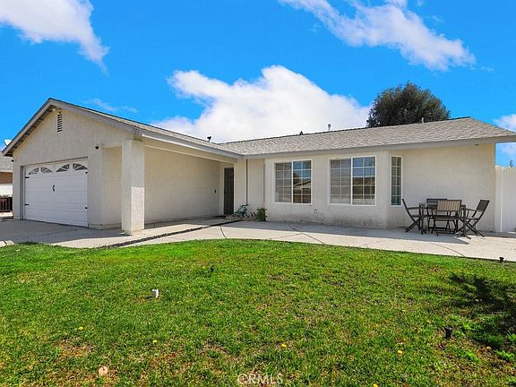 VERY VERY LOW TAXES AND NO HOA. PAID FOR SOLAR AND RV PARKING! What else do you need? How about Whole house filtration, a tankless water heater, and a Roof that is only 10 years old? This cute single story home has been lovingly maintained and nicely updated. It is situated on the corner of a quiet street just off of Newport with easy access to all major shopping and dining as well as the 215 Freeway. It has great curb appeal, set back off the street with a cobblestone wall and a large front yard. Stepping into this fantastic 4 Bedroom, 2 Bath home you will notice so many great features like a wide open Living and Kitchen area. This space is perfect for entertaining or just hanging out! The gorgeous taupe cabinets in the Kitchen compliment the laminate counters nicely. There is a large Island with seating for 3, stainless appliances, and some cabinets against an adjacent wall, creating additional storage space with a counter that overhangs, creating additional seating. The beautiful dark wood laminate floors flow throughout the entire house while the Bedrooms have carpet. All 4 Bedrooms showcase closet organizers and ceiling fans. The Bedrooms all share a Bathroom at the end of the hall that has a single sink vanity, modern light fixture, and a shower/tub combo. The 3rd Bedroom is currently being used as a Craft Room, but the closet CAN be put back together for you! The Primary Suite showcases a ton of natural light and a striking accent wall. There is even a safe in the wall hidden by a mirror, for your convenience! The Primary Bathroom also boasts a single sink vanity, shower/tub combo, and a modern light fixture. Outside is pretty spectacular too! The Backyard has a wood patio cover with 2 Hammock Swings and Twinkle Lights, Vinyl fencing on 2 sides with a block wall on the 3rd side, artificial turf, and a concrete slab that is perfect for the Basketball Hoop or Trampoline! The best part is the RV Parking! Why pay to store your toys then you can have them at your house? SCORE! This Home has everything and there is still room to make it yours! With VERY VERY LOW TAXES AND NO HOA PLUS RV PARKING AND PAID FOR SOLAR, this house is going to go fast!! Come see it today!