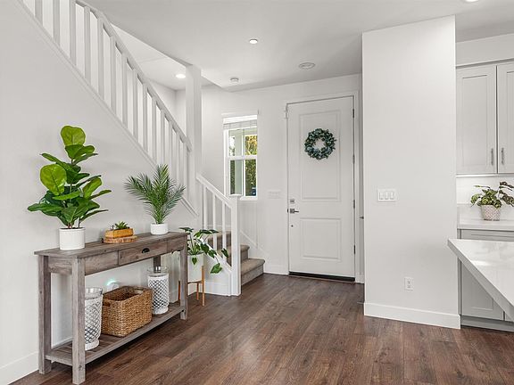 Step onto the front porch of this charming Santa Rosa home through a tall front door, greeted by airy high ceilings and a spacious, open-concept layout perfect for entertaining. A delightful blend of indoor and outdoor living, with natural light from two sliding doors, one leading to a cozy side porch and the other showcasing a tidy landscaped backyard. Low-maintenance landscaping surrounds the home, enhancing its curb appeal. The modern kitchen boasts a generous island with bar seating. Upstairs, find three bedrooms, two baths, and a laundry room. A two-car tandem garage with an automatic opener and interior access adds convenience. A convenient half-bath is located downstairs. The home is well-maintained and features both a front and side porch. No HOA. Health Care pros -the home is close to Kaiser. Grocery stores, eateries, useful business services are all within easy distance.