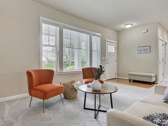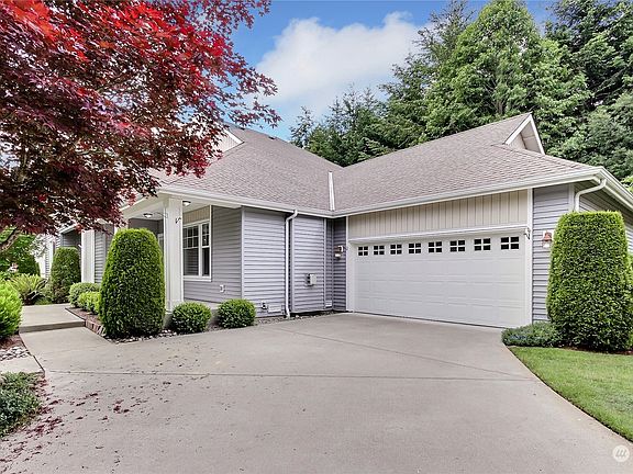 This beautiful home offers the perfect blend of modern convenience and cozy comfort. Nestled in a private and serene setting, this one-story paired home boasts 1,875 SF of spacious living space. Step inside and be greeted by the inviting open floorplan, highlighted by vaulted ceilings that create an airy and expansive atmosphere. Brand new carpet/interior paint make this home move in ready. You'll appreciate the 9 foot ceilings, white doors and trim, Cool AC! oversized 2 car garage, and large greenspace facing private deck for entertaining. The kitchen features granite counters, ample pantry and counter space for prep and entertaining. HOA maintains landscaping front and back-low maintenance easy living. Short walk to Sound View Trail.