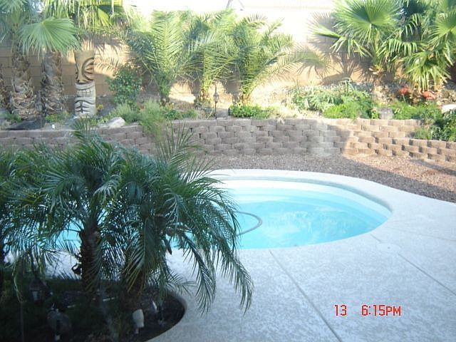 TROPICAL PARADISE IN THE DESERT! THIS 3 BEDROOM "POOL" HOME IS BEAUTIFULLY MAINTAINED BY THE ORIGINAL HOMEOWNERS! MATURE PALMS, FLOWERS & FOLIAGE ABOUND IN THE FRONT & BACKYARD! PERFECT SIZE POOL HAS AN IN-POOL SPA TOO! GREAT BACKYARD FOR HANGING OUT WITH YOUR FRIENDS! INSIDE IS A LARGE & OPEN GREAT ROOM, TILE THROUGHOUT THE HOME + CUSTOM PAINT THROUGHOUT! SOLID SURFACE EASY CLEAN COUNTERS IN A BEAUTIFUL KITCHEN OPEN TO THE GREAT ROOM WITH A SLIDER OUT TO THE BACKYARD POOL!