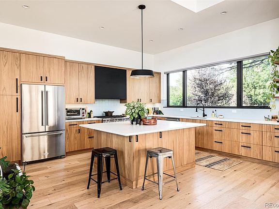 **Now available for $130,000 below appraised valuation! See full recent appraisal report in listing supplements** Created by award-winning local construction firm Level Ground Enterprise, 2977 Forest Street is a spectacular ranch that effortlessly fuses mid-century modern aesthetics with modern Scandinavian simplicity. Upon entering, visitors are greeted by the great room, where architectural elements abound. Vaulted tongue-and-groove ceilings with exposed beams stretch above, while south-facing clerestory windows usher in a kaleidoscope of natural light, creating an ambiance of warmth and openness. Central to this room is a blonde brick fireplace, its gentle glow a focal point of comfort, complemented by a bespoke built-in media console that marries form and function. The statement kitchen is home to a spacious island and storage solutions that blend seamlessly with the room’s sleek contours. Here, east-facing windows play their part, bathing the space in a soft, inviting light that enhances the culinary experience. In a thoughtful division of space, the south wing of the home holds two tranquil guest bedrooms that flank a well-appointed full bath. The north wing unfolds into a large primary suite adorned with custom built-ins, an elegant walk-in closet and a luxurious five-piece bath, where each detail has been crafted to offer an enclave of relaxation. The home’s soaring windows and sliding doors gracefully blur the line between indoor and outdoor spaces. The exterior, detailed with concrete breeze block accents, opens to a spacious rear patio, an idyllic setting for gatherings or moments of solitary repose. The secure backyard, with its raised planters, invites the tender care of a gardener’s hand, and stands ready to flourish under the Colorado sky. This Park Hill residence is a canvas of living art, where every element has been purposefully placed to create a home that is as functional as it is beautiful, making it a true embodiment of architectural harmony.