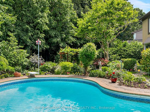 Warm and Welcoming Family Home in Sought-After Meadowvale. Discover the perfect place to call home in this beautiful two-storey family residence located in one of Meadowvale's most desirable neighbourhoods. Lovingly maintained and thoughtfully updated, this home offers an ideal balance of comfort, space, and convenience for today's busy family. Step into a bright and inviting combined living and dining room - perfect for family gatherings and celebrations. The large eat-in kitchen is filled with natural light, featuring a walk-out to the garden, a picture window overlooking the pool, and plenty of space for casual family meals. The family room is a cozy retreat, complete with a gas fireplace and bay window overlooking the lush backyard and mature English perennial garden. Outside, enjoy your own private oasis with an in-ground pool, beautifully landscaped gardens, access to a greenbelt walking path, perfect for strolls, bike rides, and outdoor play. Upstairs, you'll find four spacious bedrooms, offering comfort and privacy for every member of the family. The partially finished basement provides a great bonus space - ideal for a playroom, home office, or fitness area, plus plenty of storage and an oversized stacked laundry area.Recent updates include a new high-efficiency furnace, tankless water heater, and central vacuum system, ensuring worry-free living for years to come. Located close to excellent schools, parks, shopping, and major highways, this home offers the best of family living, a quiet, friendly community with everything you need just minutes away.Come see why families love calling Meadowvale home, a place where comfort, convenience, and community come together beautifully.