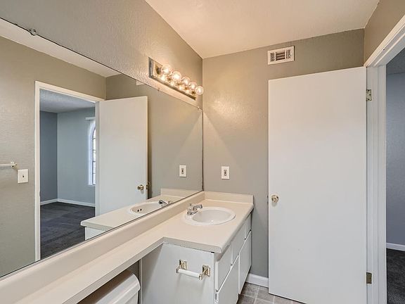 The primary bedroom offers carpet flooring, mirrored closet doors, and a full en-suite bathroom with vinyl flooring and a tub/shower combo. The second bedroom is also carpeted with window blinds and is adjacent to a second full bathroom with similar finishes. ** MOVE IN SPECIAL! HALF OFF FIRST MONTH'S RENT! **