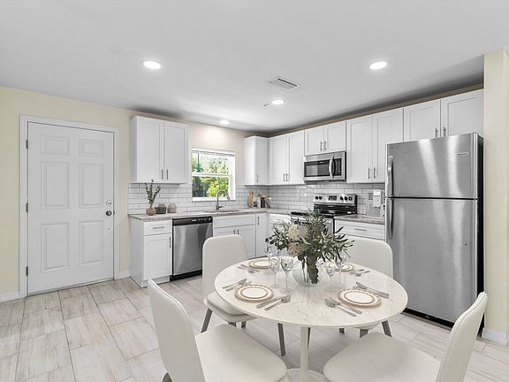 - Modern kitchen with stainless steel appliances and granite countertops.