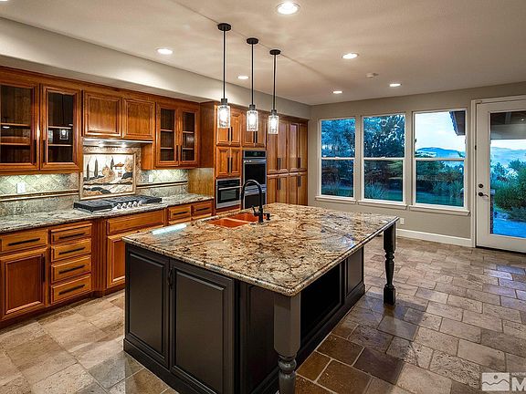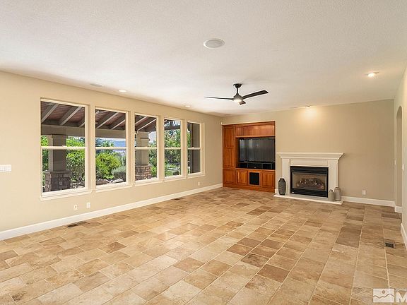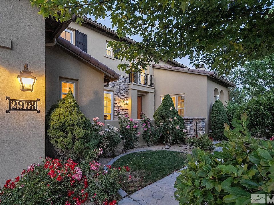 VIEWS. PRIVACY. SPACE. This is the home you’ve been waiting for! Nestled on .53 acre on a cul-de-sac in ArrowCreek, you will find this 3,904 square foot home a relaxing retreat morning, day or evening. Boasting 5 bedrooms plus an office or fitness room, 4 ½ bathrooms, 3 gas log fireplaces and a spacious outdoor living space, this property is truly a gem. Enjoy the shelter of the custom crafted patio roof in the mid-Summer sun and gaze at the lights of downtown Reno as the sun sets., The carefully tended landscaping is mature and lush with a 35-40 foot water feature and inground wiring for landscape lighting to provide even more serenity to the outdoor space. The many upgrades include new paint, new carpet, new ceiling fans, new lighting, new bathroom fixtures & hardware, new west-facing windows, new Frigidaire Gallery double oven and new 5-burner gas cooktop. As an added bonus, there is a playhouse in the backyard on its own foundation(included in purchase at no value and with no warranty) and a paver patio that is ready for a firepit. Imagine living just 30 minutes from Tahoe beaches and ski lifts, yet returning home to serenity and privacy. ArrowCreek is a 24-7 manned gated community of approximately 3,200 acres with about 1,100 homesites and offers miles of open space and walking paths. The Residents' Center offers 3 swimming pools, hot tub, tennis & pickle ball courts, fitness center, meeting rooms, an outdoor playground area, and miles of walking paths. Near Lake Tahoe and Reno's downtown hub, this region offers notable restaurants, events, shopping, year-round activities, and the ever popular Nevada tax advantages. The new "Club at ArrowCreek" recently finished a $65 million dollar renovation and offers two private championship golf courses, a new events center, multiple dining venues, resort style pool complex, pickleball courts and more! Club membership is available separately. Ask listing agent for details. ARROWCREEK IS THE PLACE TO BE!
