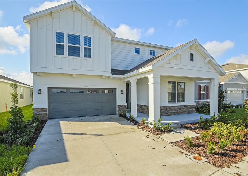 Discover this eye-catching Moonstone home, ready for quick move-in! Included features: a covered entry; a main-floor bedroom and full bath; an inviting kitchen boasting brown 42" cabinets, white quartz countertops, stainless-steel appliances, a large island and a walk-in pantry; an open dining area; a thoughtfully designed great room; a convenient loft; an impressive primary suite showcasing an oversized walk-in closet and a private bath; three additional bedrooms; a shared hall bath; an upstairs laundry with a white washer and dryer; and a relaxing covered patio. This home has no rear neighbors and also offers 7" x 22" boxwood tile flooring. Tour today! 1x capital contribution fee of $500.