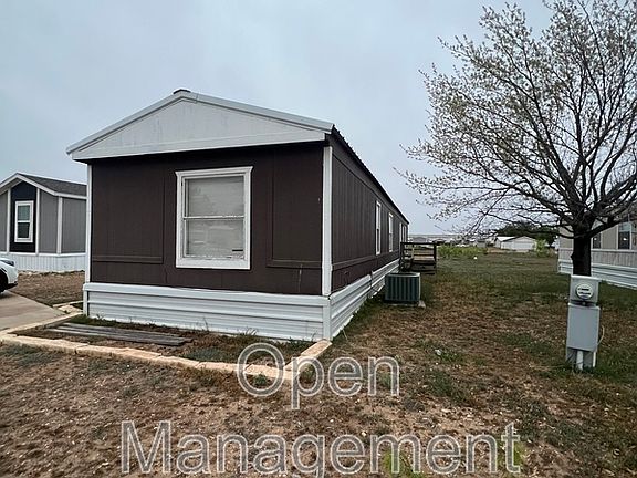 Come home to comfort in this beautiful three-bedroom, two-bathroom home located in the peaceful Sun Lake Mobile Home Community of San Angelo. The spacious, open layout offers a cozy flow between the living, dining, and kitchen areas-perfect for both everyday living and entertaining. Each bedroom is generously sized, providing a quiet retreat filled with natural light and warmth. With its inviting ambiance and thoughtful design, this home is move-in ready and full of charm.