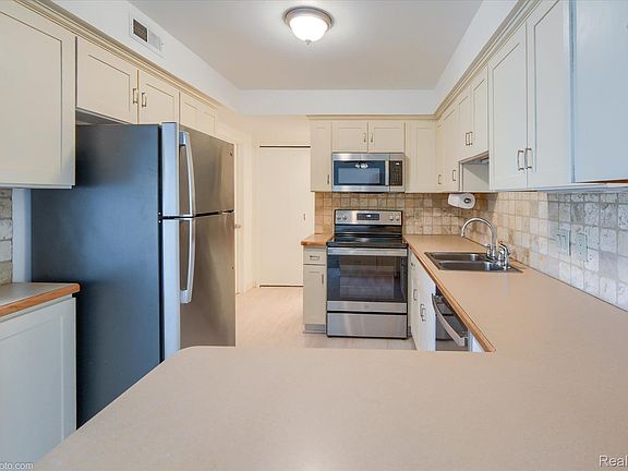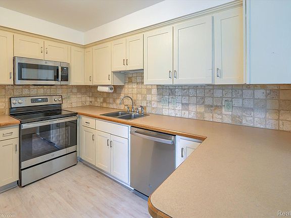 This well-maintained 1 bedroom 1.5 bath condo features a large living room with lots of natural light. The kitchen area has an updated tile backsplash, stainless appliances, an abundance of cabinet space and a newer laminate floor. Also on the first level is the half bath and laundry room. On the second floor you will find the updated master bath with dual sinks along with the spacious master bedroom which includes an abundance of closet space! Other recent upgrades include new windows in 2022, and newer light fixtures. The HOA includes water, sewer, gas, trash, lawn and snow removal! Conveniently located to Warren City Hall, GM Tech Center, farmers market, shopping, dining, freeway access, schools, and parks.