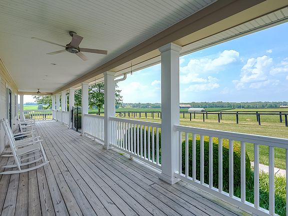 A 13 acre retreat surrounded by beautiful farm land in a great location! This extremely well built and maintained property is located just minutes from Georgetown, Paris and Lexington. The 3,200+sqft residence contains 3 bedrooms and 3 and one half baths, including a first floor primary suite, lovely kitchen with quality cabinetry and granite countertops, stainless appliances, and a wonderful wraparound porch overlooking the countryside. Additionally there is a partially finished basement, w/full bath (shower) and outside entry, a craft/tv room on the second floor, two large storage rooms on the second floor, a very nice climate controlled sunporch leading to a fully fenced dog yard, and an oversized two car garage.