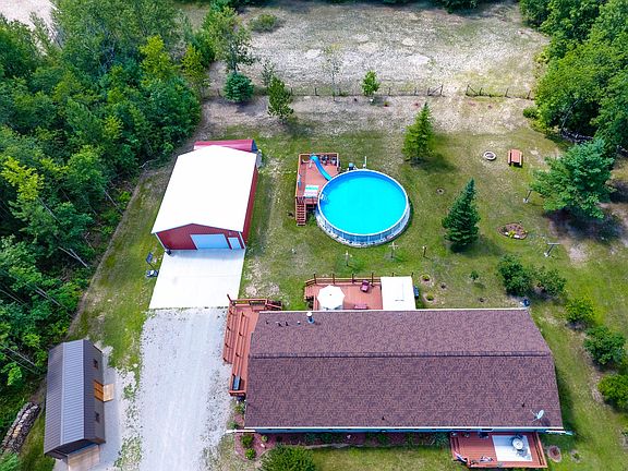 EXTENSION ROAD OASIS. Nestled among nearly 4 acres of hardwoods just north of Topinabee, and attached to state land, you'll find this hidden gem. Your opportunities for entertaining will be virtually unlimited. The large landscaped yard boasts a heated pool with a sun deck and another huge deck on the back of the house with shady gazebo seating. A sprawling 2300+ sq ft home with 4 bedrooms, 3 full bathroom, and an open floor plan should be plenty of room for family and friends. Multiple outbuildings include a 30x40 pole barn with cement floor plus sheds (with power) 12x28, 12x24, and 8x20 and the air compressor stays. Also included is a whole house backup generator to keep everyone comfortable in case of power outage. New roof in 2019 and seamless gutters with leafguard too. +++++