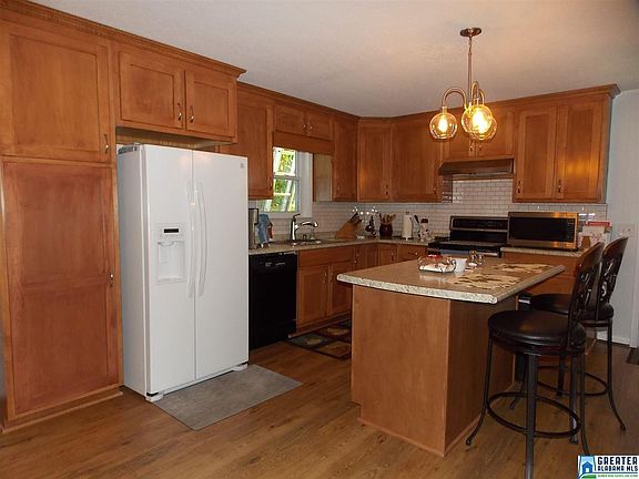 Low maintenance brick and vinyl with metal roof. This 3 BR, 2 BA has new interior paint, carpet & laminate hardwood floors. Kitchen has new cabinets. baths have been completely updated. Nice sunroom on back of home. Wrap around deck for outdoor entertaining. Two-car garage in basement. Private lake for property owners in subdivision.