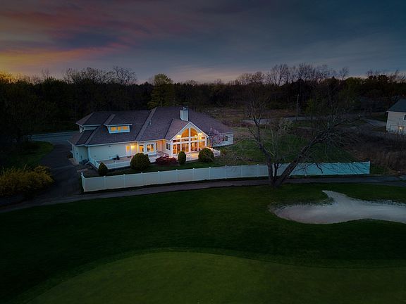 This custom-designed home showcases a stunning open floor plan, perfect for both everyday living and entertaining. At its heart is a chef’s kitchen featuring upgraded stainless steel GE Monogram appliances, custom cabinetry, and a spacious butcher block island that offers ample prep space. The thoughtfully designed primary suite includes custom-built walk-in closets and a luxurious tiled bath with double vanity sinks. A bright, sunlit four-season room off the living area—complete with a built-in grill—opens to a private back patio, ideal for outdoor gatherings. Enjoy peaceful views of the golf course from your tranquil backyard. The home also includes a spacious bonus room over the two-car heated garage, complete with a full bath and generous storage—ideal for guests, a home office, or studio space. Additional highlights include a walk-in pantry, multiple built-in storage solutions, and professional landscaping. This exceptional home seamlessly blends comfort, function, and style.