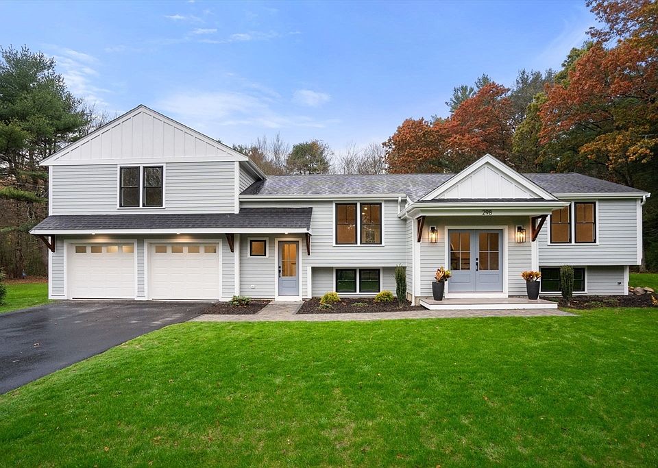 Experience the perfect blend of New England charm and modern luxury in this completely renovated home set across from the rolling fields of O’Neil Farm in Duxbury. This home was completely reimagined from top to bottom with multiple new additions poured, creating a stunning 4 bed, 2.5-bath home. It features high-end craftsmanship, an open floor plan, and designer finishes throughout. The custom chef's kitchen has premium appliances and a large island that opens seamlessly to the living and dining areas, ideal for everyday living and entertaining. The spacious primary suite includes a spa-like bath and walk-in closet, while 3 additional bedrooms offer versatility for guests or office space. The finished lower level has a quiet home office with large windows overlooking the yard. Set on a flat .92 acre lot with relaxing views of the Farm makes this home feel like a retreat, yet you have easy access to everything Duxbury offers. This home perfectly unites relaxation and luxury!