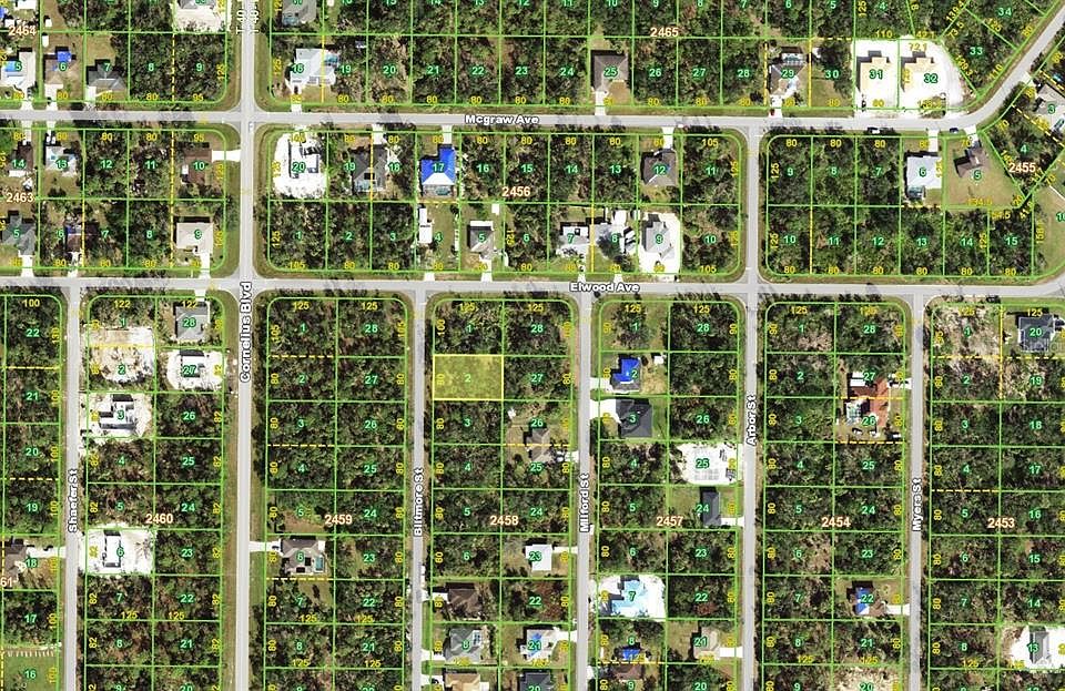 Vacant residential lot located at 298 Biltmore St in Port Charlotte. Situated in a quiet neighborhood near shopping, dining, schools, and medical facilities. Easy access to US-41 and I-75 provides convenient travel throughout Southwest Florida, including Gulf Coast beaches and surrounding communities. No HOA restrictions. Suitable for building a single-family residence or holding as an investment.