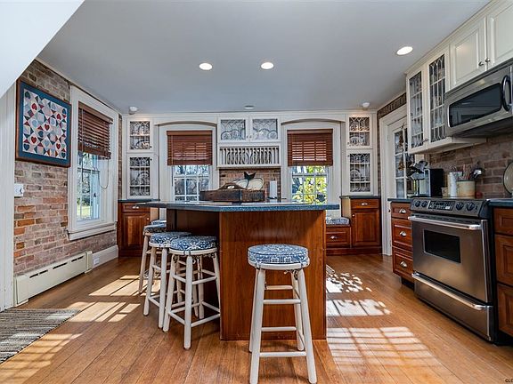 Welcome to Clapper Road; an 1840's grand, updated Brick Federal Colonial. Upon entry, you will be greeted by high ceilings, Hickory wide plank floors, ornate woodwork and spacious rooms. The fabulous custom kitchen is complete with two toned cherry and bisque glazed cabinetry, leaded glass doors, stainless steel appliances, granite counters, apron sink and exposed brick. As a added feature, there is first floor laundry and butler's pantry. This historic home also offers large updated bathrooms and a fabulous studio for a home office or hobbyist. Situated on a lovely country road with beautiful views and yet minutes from area shops, restaurants and the thruway. *roof is modified bitumen/asphalt.