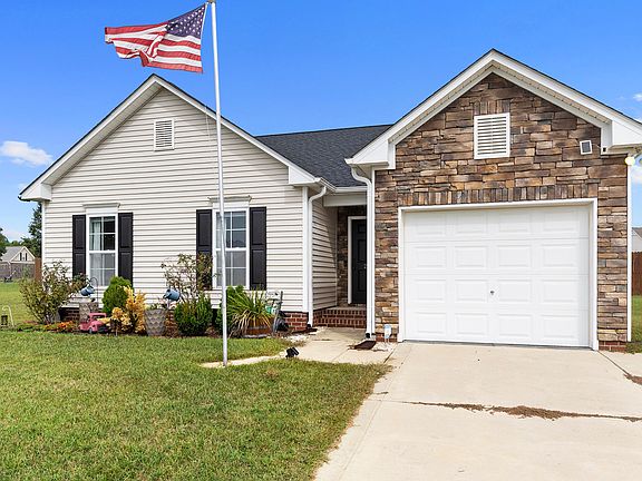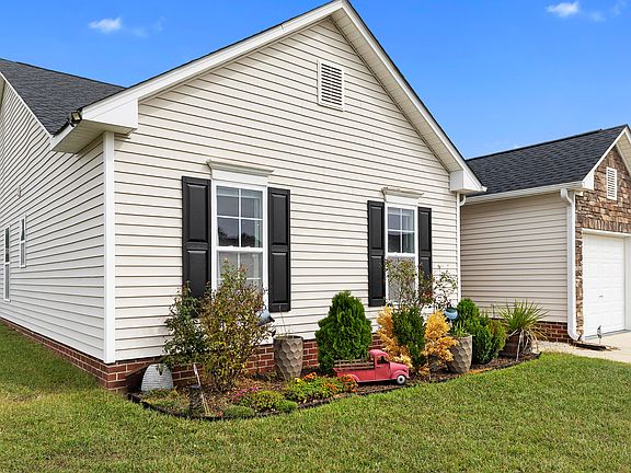 Come see this gem in the desirable Liberty Chase community with no city taxes and one level! With beautiful stone accents and exceptional curb appeal, this home sits on a spacious lot just under half an acre, complete with a privacy-fence and brand new 10x12 outdoor shed! The covered patio is just off from the dining room. This thoughtfully designed home features 3 cozy bedrooms and 2 full baths, anchored by a generously sized great room warmed by a charming electric fireplace. The open concept kitchen seamlessly overlooks the great room, fostering connection and flow, and comes equipped with a brand-new fridge as of April 2025. You'll love the walk-in pantry with solid wood shelving for storage, plus the convenient indoor laundry area. Just outside the primary suite, extra closets provide extra storage, while the primary bath indulges with a linen closet and dual sinks for added comfort. Recent updates include: the septic system was professionally pumped in January 2025, a new architectural shingle roof was added on September 2024, and the HVAC system was upgraded in 2019. A 2nd car parking pad was also built just this past spring. The community includes a delightful playground area, complete with picnic tables and more—perfect for everyone!