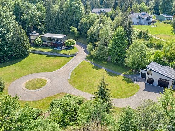 PRICE REDUCED! A GREAT VALUE!! Only a 2 day bump period. Now's your chance to buy this great property. Discover the charm of Camano. Idyllic 10 Ac Retreat w/total privacy.Custom modern design. Floor to ceiling windows & large deck w/ views of Utsalady Bay & Mt. Baker, gorgeous landscaping. Reverse two story design w/2nd floor w/ Chef's Kitchen w/ Viking appliances + copper accents. Beautiful concrete floors w/energy efficient radiant heating. Freshly updated 1/2 bath. Skybridge to the Primary suite. The on-suite bath has copper shower + stand alone tub. Large walk-in closet w/extensive organizers. Circular drive to the 1000+ sq ft shop w/ RV/boat bay AND a ADU 1bed + full bath with its own laundry.No ferry to get there. 2 car gar + shop.