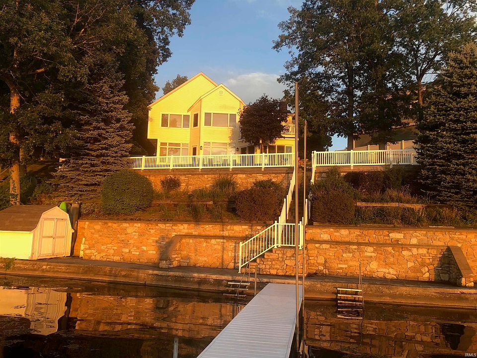 ONE OF THE BEST VIEWS ON WEBSTER LAKE! Looking for a lakefront home that offers not only great views but swimming, fishing, and a beautiful home as well! This custom built home features many upgrades including Corian countertops, Amish built cabinetry in the kitchen and dining are, custom trim, hardwood floors in many areas. As you enter the home you are on the main level with 4 roomy bedrooms. The primary suite features great views of the lake including magnificent sunsets, a large walk-in closet and double sink bathroom. The current 4th bedroom is attached but could become a spacious office/den for a work-at-home resident. The remaining bedrooms, a second bath and laundry room are also on this level. The lower level features the open living room, kitchen and dining area in the walk-out to the lakefront. Lake views abound from the waterfront yard where you can watch the activities year round. (And you do not even have to leave your yard for a great view of the fireworks!) The detached building has space for an exercise room/he shed/she shed, or retreat.... use your imagination for this space. There is also extra storage with a workbench for lawn equipment in this building. Webster Lake is known for its outstanding Musky fishing, as well as being an all sport lake for boating fun. Don't miss out on this exceptional lake home! (Most furnishings can stay.)