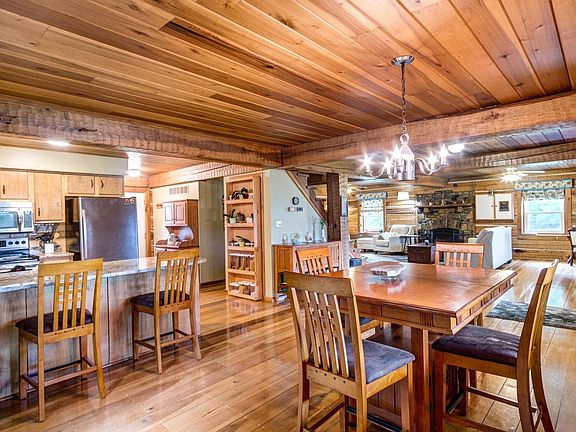 Country living at it's best!! This beautiful 2 bedroom, 2 bath log home sits on 5.9 acres with a barn!! The open floor plan of this log home makes entertaining guests an ease! Come relax by the cozy fireplace in the great room, or on the deck welcoming you to enjoy the breath taking sunrises and sunsets! Enjoy nature at your back door! Experience quiet privacy away from it all, call us today and let's make your dreams come true!