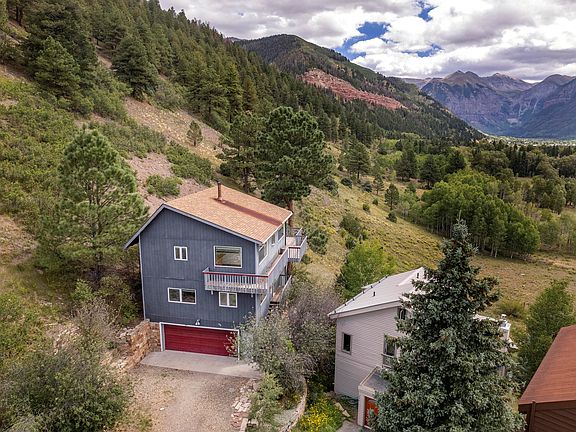 Located just west of Telluride, this Hillside home offers breath-taking views of Telluride's picturesque box canyon, including Ajax Peak, Ballard Mountain, then South to the valley floor & finally sunsets to the west. With a 2 car garage/storage/laundry on the ground level, the 3 bedrooms and 2 baths on the 2nd level & living, dining, kitchen, powder room (along with a walk in pantry & a wood-burning stove) on the 3rd level, this home lives very comfortably. The views are truly magnificent! Built by a beloved long time local family, this is the first time on the market for this home with this very special location. It is a diamond in the rough, ready for you to make it into your dream home. The location and views cannot be beat!