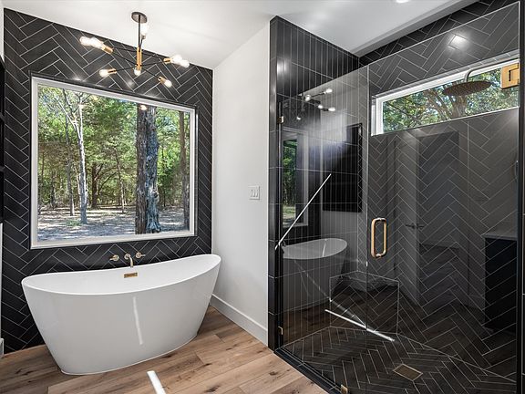 The kitchen and dining spaces flow effortlessly together, showcasing quality finishes, custom cabinetry, and thoughtful design details throughout. The primary suite is a true retreat, highlighted by a spa-like bath with a soaking garden tub framed by a picturesque window—perfect for unwinding at the end of the day.