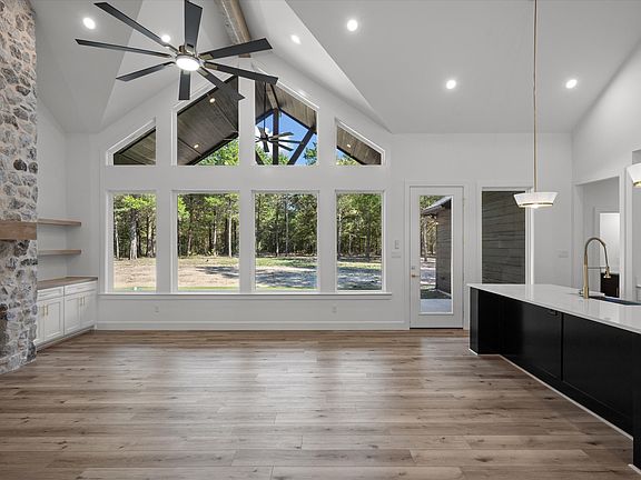 From the moment you arrive, the curb appeal impresses with mature oak trees framing the home’s inviting exterior. Step inside to discover a light-filled, open-concept layout that seamlessly blends elegance and comfort. The spacious living area features a gorgeous stone fireplace and walls of windows that capture serene views of the surrounding trees.