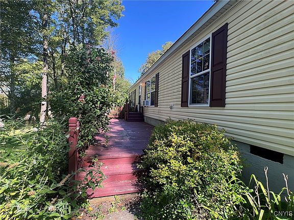 Welcome to this quaint 3 bedroom 2 bath Double wide ranch home located in the country on 5.5 acres. This is a unique property with plenty of road frontage on 2 sides, one side has 600 feet.. Open lot with plenty of woods and the back yard leads with a trail through the property from the house to the small barn/shed which currently houses turkeys. This home offers so much, with an open floor plan for the kitchen-dining and living room. Kitchen has an island which adds so much more cabinet space. 2 large bedrooms, and the main bedroom offers a full bath, with large linen closet, plus full second bath. This home is a 2012 double wide which sits on a slab with block foundation. New furnace, and 2018 new well which is 198'. Never ending water. Detached 2 car garage. The setting for this property is absolutely beautiful. So many trees, the house sits back off the road and completely surrounded by trees, its own paradise and even has a pond! There is also a wide open lot that has many possibilities. Make your appt. today you won't be disappointed.