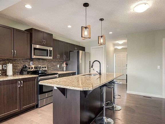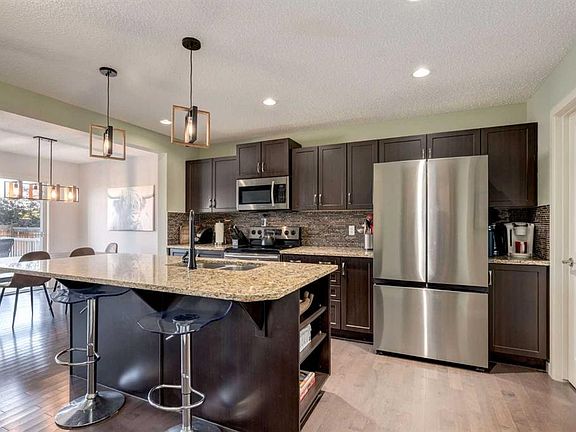 Beautiful semi-detached home situated in the sought after community of River Heights offering 1,896 SF of developed living space with 3+2 bedrooms, 2.5 bathrooms plus a bonus room. The bright and open main floor greets you into a large tiled foyer with seamless transition into the main living area with hardwood flooring throughout and a well equipped kitchen featuring quartz countertops, center island with eating bar, stainless steel appliances and a walk-in pantry. The dining area gives access to the SOUTH facing deck and living room enjoys backyard views. A powder room completes this level. Upstairs you will find a generously scaled bonus room, primary suite with a walk-in closet and 4 piece bathroom and 2 additional guest rooms which share a 4 piece bathroom. The basement expands your living space with 2 more bedrooms (or home office), laundry room and an abundance of storage. Don't overlook the OVER-SIZED attached single garage (24'x13') and spacious, fully fenced backyard. Ideally located within walking distance to parks, schools and minutes to an array of amenities. Nothing to do but move in!