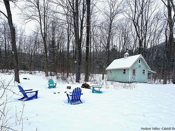 Charming Chichester home just 3 mins to the town of Phoenicia if you choose to leave this peaceful oasis! Sit on the front porch listening to the soothing sounds of the Stony Clove Creek, entertain on the back deck and enjoy the new hot tub then some smores & fun over the backyard open fire pit. Feeling creative – tons of possibiliites for the separate heated studio building…music, art, ceramics, home business. Enter the house into the spacious mudroom with lots of potential think sun porch/room, entertaining is easy in this large kitchen & diningroom combo with doors to the deck. The kitchen has lots of workspace with new countertops, backsplash and appliances all open to the dining room with ample space for lots of guests. Cozy up in the living room with wood burning stove, a wall of bookshelves. Off of the living room is a good size bedroom now being used as den and playroom. Upstairs find 2 bedrooms and large full bathroom, views & sounds of the creek to drift off to sleep by. New mini split units for A/C and heat throughout the house. Move right in and start enjoying the upstate life!
