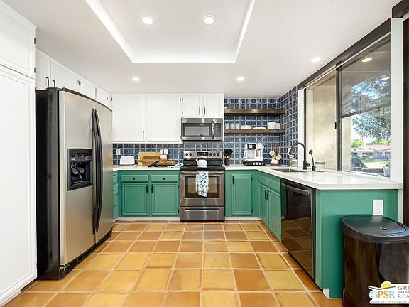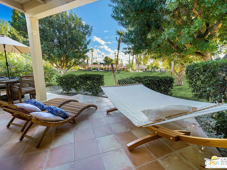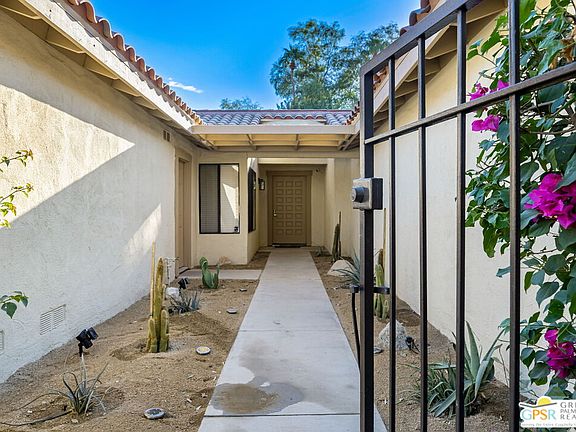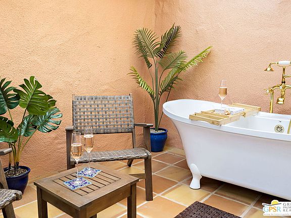 Welcome to this modern Spanish oasis situated in the beautiful Monterey Country Club in Palm Desert, California. Enjoy golf course and mountain views from this spacious 2 bedroom 2 bathroom home expertly designed with everything you'll need to feel at home. Resort amenities include outdoor pools, hot tubs, access to golf at the private club, access to the gym, tennis courts, pickleball courts, bocce ball and much more! Property featured in The Wall Street Journal! Surrounded by breathtaking natural beauty and tucked away amid dramatic mountain ranges, this property offers a tranquil getaway to a desert oasis. Marvel at the beauty from the large patio off of the living area or have a family BBQ with the wonderful view. Meals are easily prepped in the large updated kitchen with new appliances. The dining area is big and bright and perfect for everyone to gather. The living room has a plenty of space for comfy furniture for friends and family to watch a movie on the 65" TV or just cuddle up and read by the easy-start gas fireplace. Each bedroom has plenty of closet space to really make you feel at home. The main bedroom also offers a built-in office area which is perfect for anyone working remotely. The view from the main bedroom includes the private atrium which can be covered for shade or opened to see the stars. Have a drink in the atrium or enjoy a soak in the 72" clawfoot outdoor tub. This area is the perfect private oasis! Community amenities include 37 heated pools and spas two just a short walk from the home! Tennis courts, pickleball courts, bocce ball and gym is available at various fee levels for you to choose. Tee times at the award winning private golf course are also available for a discounted rate. (Not all homes in Monterey Country Club have access to the golf course and fitness facilities, only homeowners with special memberships.)