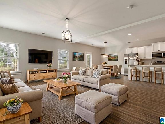 Like-new 2024 brick home in the desirable Shiloh Creek neighborhood of Calera, offering just under 2,000 sq ft of living space with plenty of room for everyone! Step into a bright foyer with soaring ceilings and stylish LVP flooring that flows through the main level. The open concept layout features a spacious living room and modern eat-in kitchen with quartz counters, white shaker cabinets, large island, and pantry. Unloading groceries is a breeze with direct kitchen access from the 2-car garage, and a handy half bath adds daily convenience on the main level. On the second floor you’ll find 4 bedrooms and 2 full bathrooms, including a large master suite with ensuite bath, along with 3 more bedrooms and a practical laundry room. Outside, enjoy a nice flat backyard with patio, perfect for entertaining or relaxing. Conveniently located near the interstate & local amenities, this move-in ready home offers both comfort and convenience. 100% FINANCING AVAILABLE! Schedule your showing today!