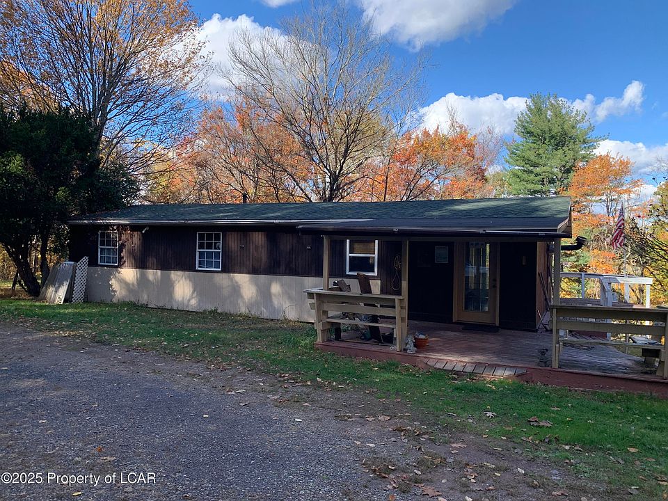 3 Br, 1 bath ranch on 5.17 acres of land. Living room with vaulted ceiling, first floor has wood burning stove. The lower level has a pellet stove for supplemental heating. The lower level is a walk out and is partially finished with a bar. Home needs some love, but has a lot of potential. Plenty of parking. Long driveway. The roof was replaced in 2020. Great location, easy access to I80 & I81 Home is being sold in "AS IS" condition. Cash or conventional financing only. No FHA, VA or USDA.
