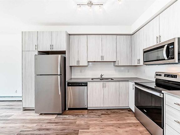Click brochure link for more details** Welcome to this nearly new top-floor condominium with no neighbours above! It features a west facing orientation that bathes the home in natural light and treats you to spectacular sunsets. Perfect for those who value the ease of condo living with premium finishes and a quiet, serene setting, this home delivers both comfort and style in equal measure. Step inside to discover a bright and thoughtfully designed 2 bedroom, 2 bathroom layout. The open concept living and dining area flows effortlessly across luxury vinyl plank flooring, complemented by plush carpet in the bedrooms and low-maintenance lino tiles in the bathrooms. Knock-down ceilings and large windows enhance the airy, modern feel. The chef inspired kitchen impresses with full height cabinetry, quartz countertops, stainless steel appliances, a pantry, and soft close drawers blending functionality with high end style. The primary suite is a true retreat, featuring a walk-through closet leading directly to a spa worthy 5 piece ensuite with dual sinks, a quartz vanity, and a glass walk-in shower. The second bedroom is perfect as a guest room or home office enhanced by a transom window that brings in extra light. A second full bathroom is conveniently located nearby, ideal for visitors or shared living. Your private west facing balcony includes a natural gas hookup, making summer barbecues or relaxing evening sunsets a part of daily life. For great convenience, enjoy in-suite laundry with a stacked washer/dryer, secure underground parking, and a private storage locker. The professionally managed condo board ensures a maintenance free lifestyle with snow removal and exterior upkeep handled for you. Beyond your door, the condo complex sits beside a scenic nature reserve with ponds, green space, and walking paths offering a peaceful setting just minutes from modern conveniences. You’ll be within walking distance of a future school site, close to Sage Hill Crossing, Evanston Towne Centre, and have quick access to Stoney Trail for easy commuting anywhere in the city. This top floor gem in Sage Hill Park blends modern comfort, thoughtful design, and unbeatable location! Don’t miss the opportunity to make this bright, stylish condo yours.