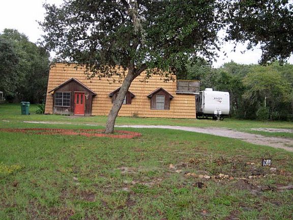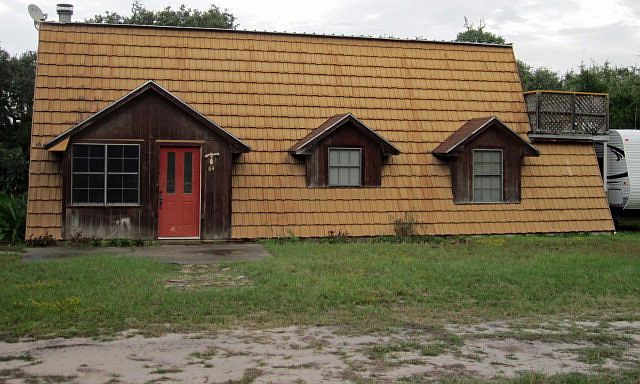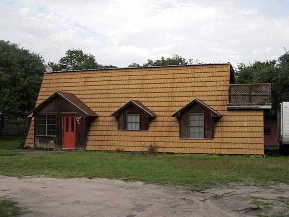 Cute Charming A-Frame Cottage Sits on almost an Acre. Spacious 3/2 with 1622 Sq Ft. Gorgeous Patio balcony. Large Mature trees. Two Storage buildings, Above Ground Pool. $2000.00 Carpet Allowance. Water is a private company, CMR Enterprise. Homes has own Septic System.