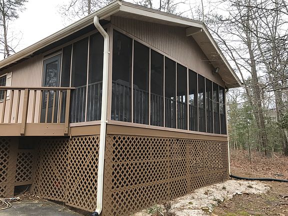This is the perfect vacation home! Comfortable and rustic and surrounded by woods this home has lots of privacy. You can enjoy the mornings or evening sounds sitting on your screened porch. This home comes completely furnished. Inside is a comfortable living room with fireplace. Large covered storage area for boats and cars. Come see, come stay! Ready to become your summer camp.